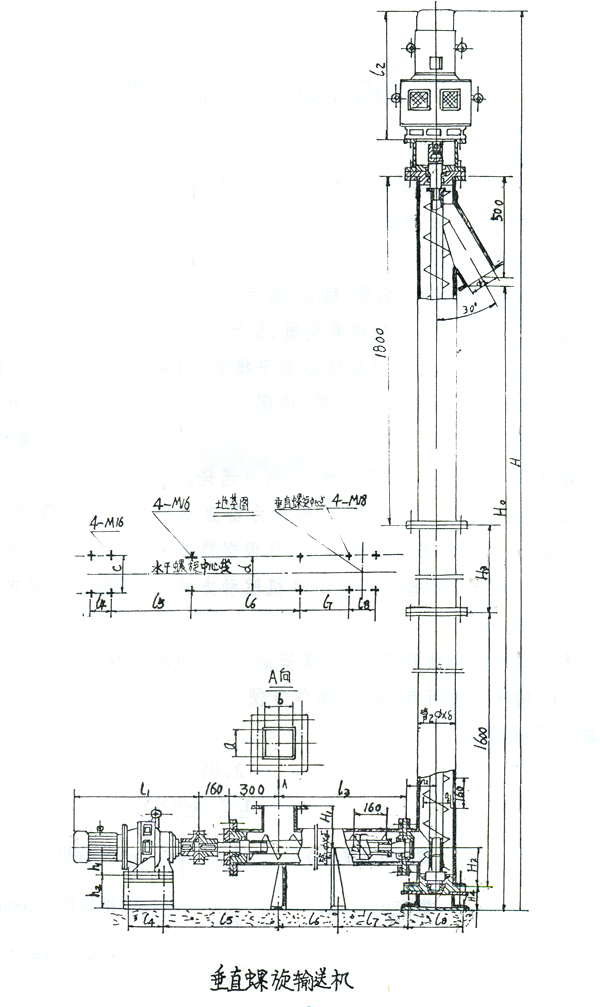 2、LC型立式螺旋輸送機(jī)分水平槽機(jī)體(即喂料螺旋槽機(jī)體)垂直機(jī)體兩部分。垂直機(jī)體分頭節(jié)、中間節(jié)、尾節(jié)三部分,每一部分又有集中不同規(guī)格的長度依機(jī)高選擇,可組成3~15m不同高度的整機(jī),螺旋機(jī)每增加0.5m為一高度規(guī)格,供用戶選擇。